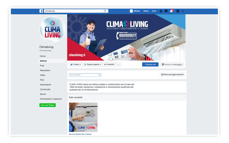 Le azioni di social media marketing puntano soprattutto su periodiche campagne Facebook Ads mirate per località, età, interessi degli utenti. L’attività si basa sulla promozione di contenuti pubblicitari originali, adeguati al target, in grado di illustrare le offerte e i servizi di climatizzazione e condizionamento. Abbiamo raggiunto un aumento notevole dei contatti anche tramite la redazione di post ed eventi, predisposti in modo da creare interesse sul brand Clima living.